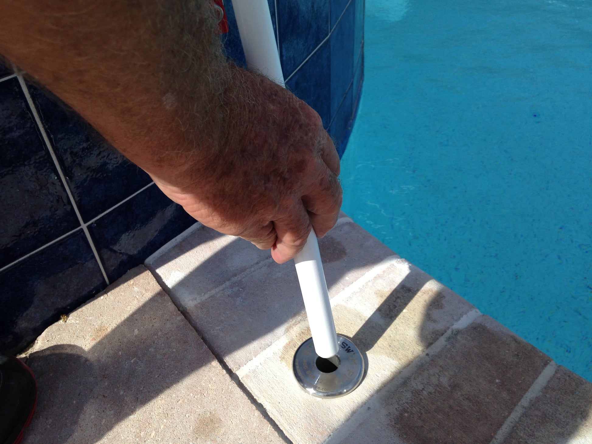 The spare In-Deck Base with grout can be installed into most pools or swim spa decks. The top plate is 2 inches in diameter and the stem is 1 inch in diameter and 3½ in. long. A bag of grout is included to seal the base into place.