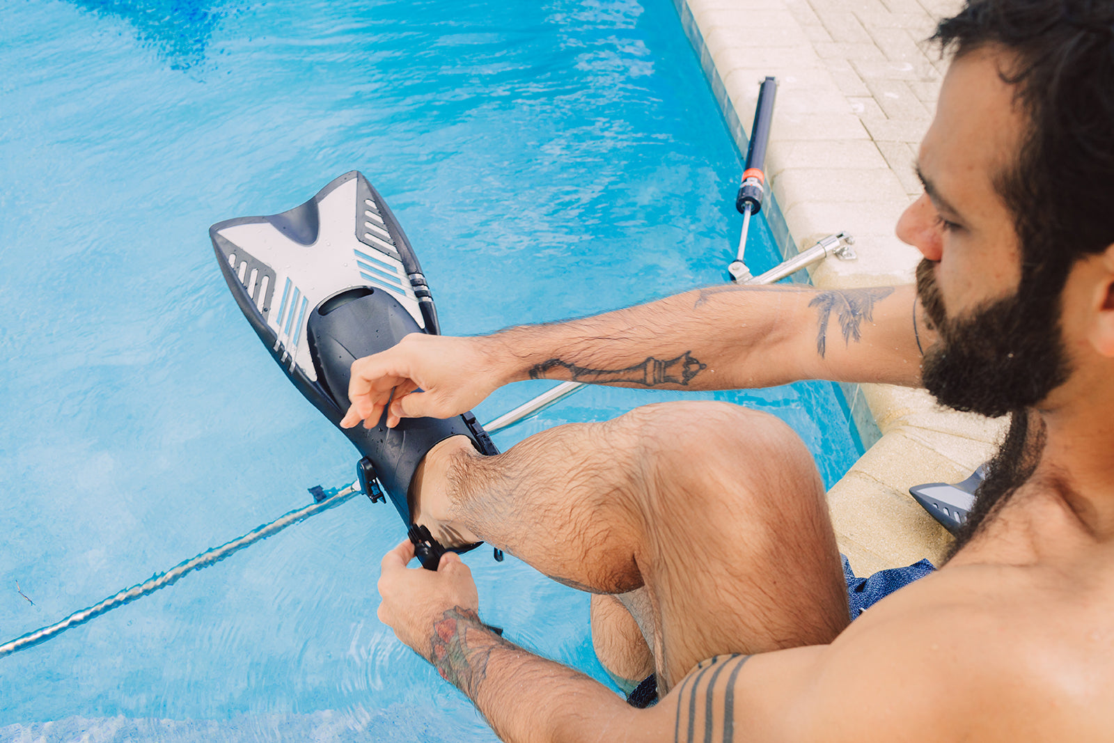 - Leverages natural kicking motion to produce a springboard effect that boosts efficiency